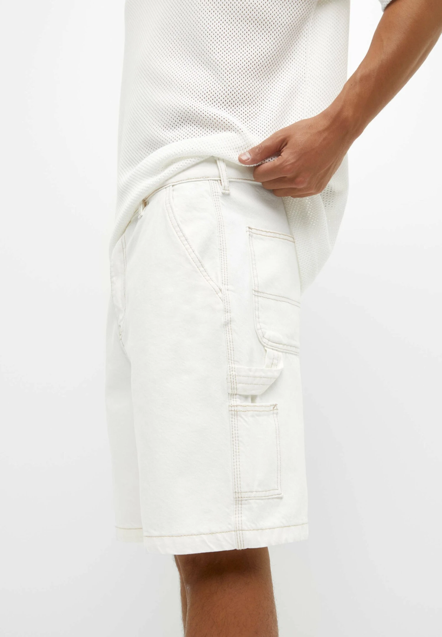 PULL & BEAR Carpenter Bermuda Shorts Di JeansWhite Uomo Jeans PUC22F0C1-A11