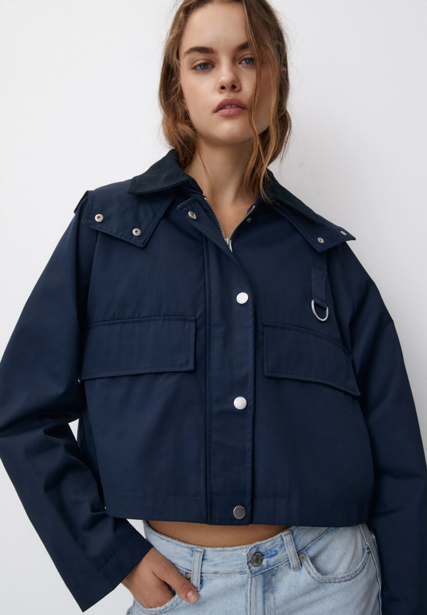 PULL & BEAR Collar Waxed CroppedGiacca LeggeraDark Blue Donna Giacche E Blazer PUC21U0GO-K11