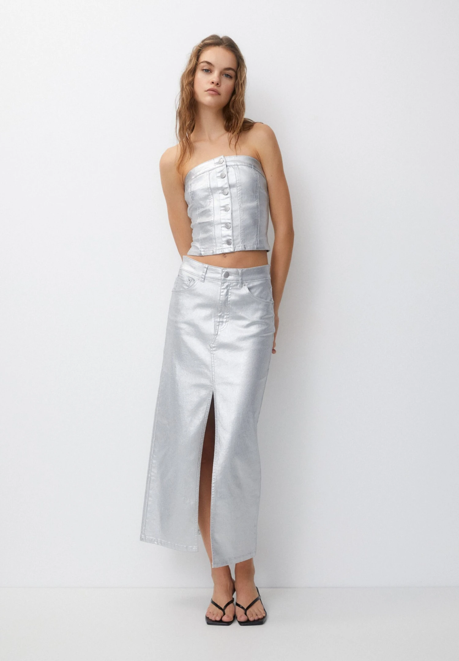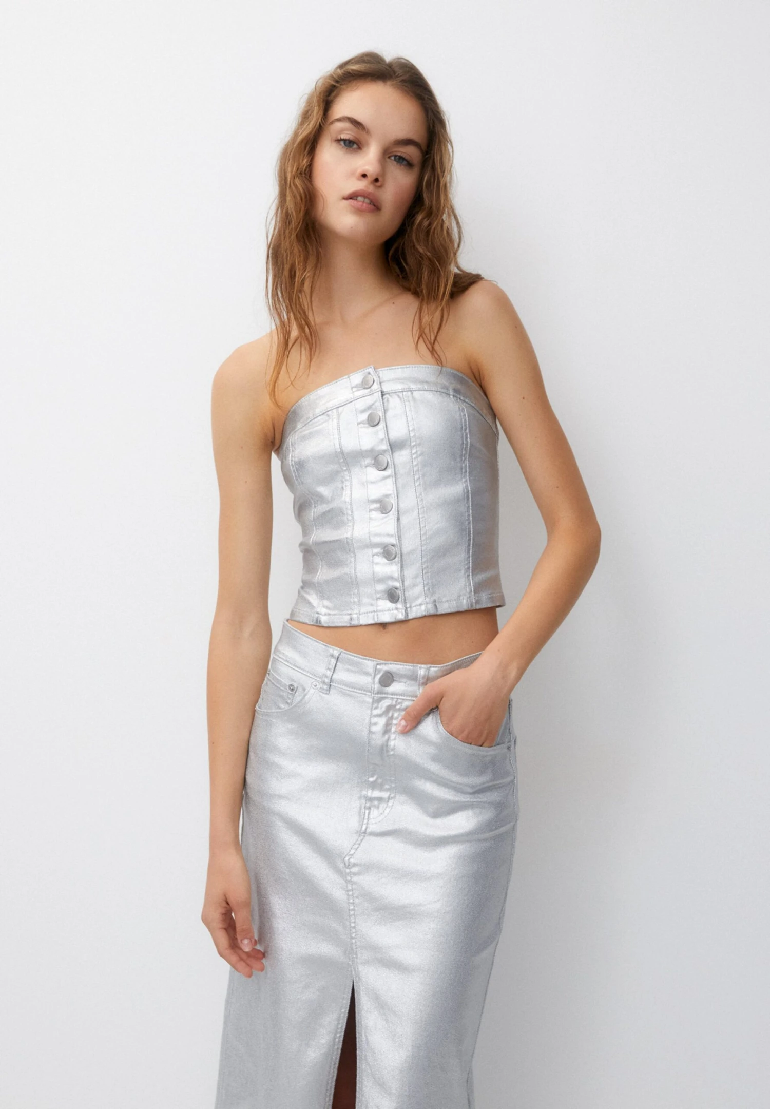 PULL & BEAR CorsetTopSilver Coloured Donna T-shirt E Top PUC21D2IQ-D11