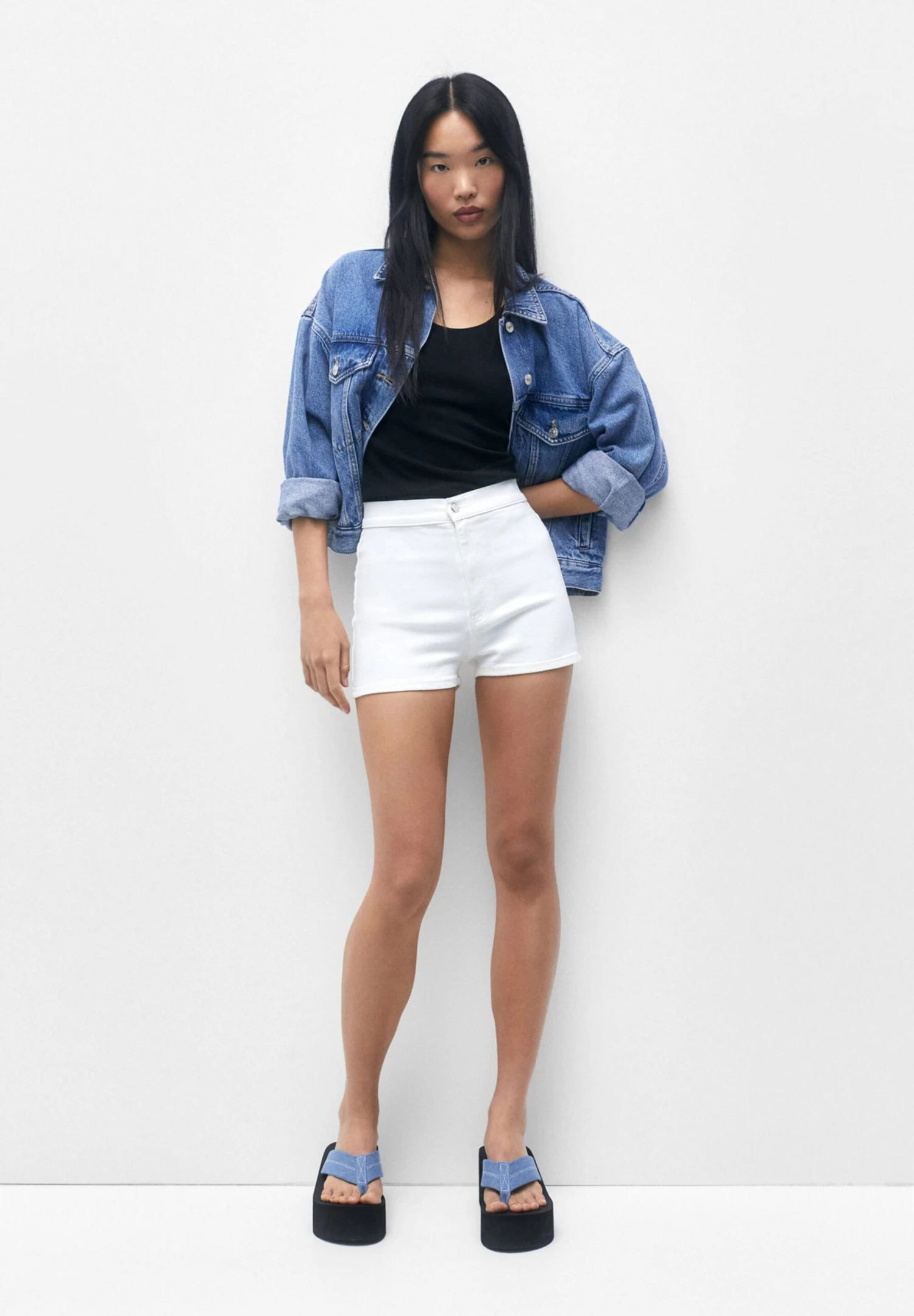 PULL & BEAR High-Waist- Shorts Di Jeans – White