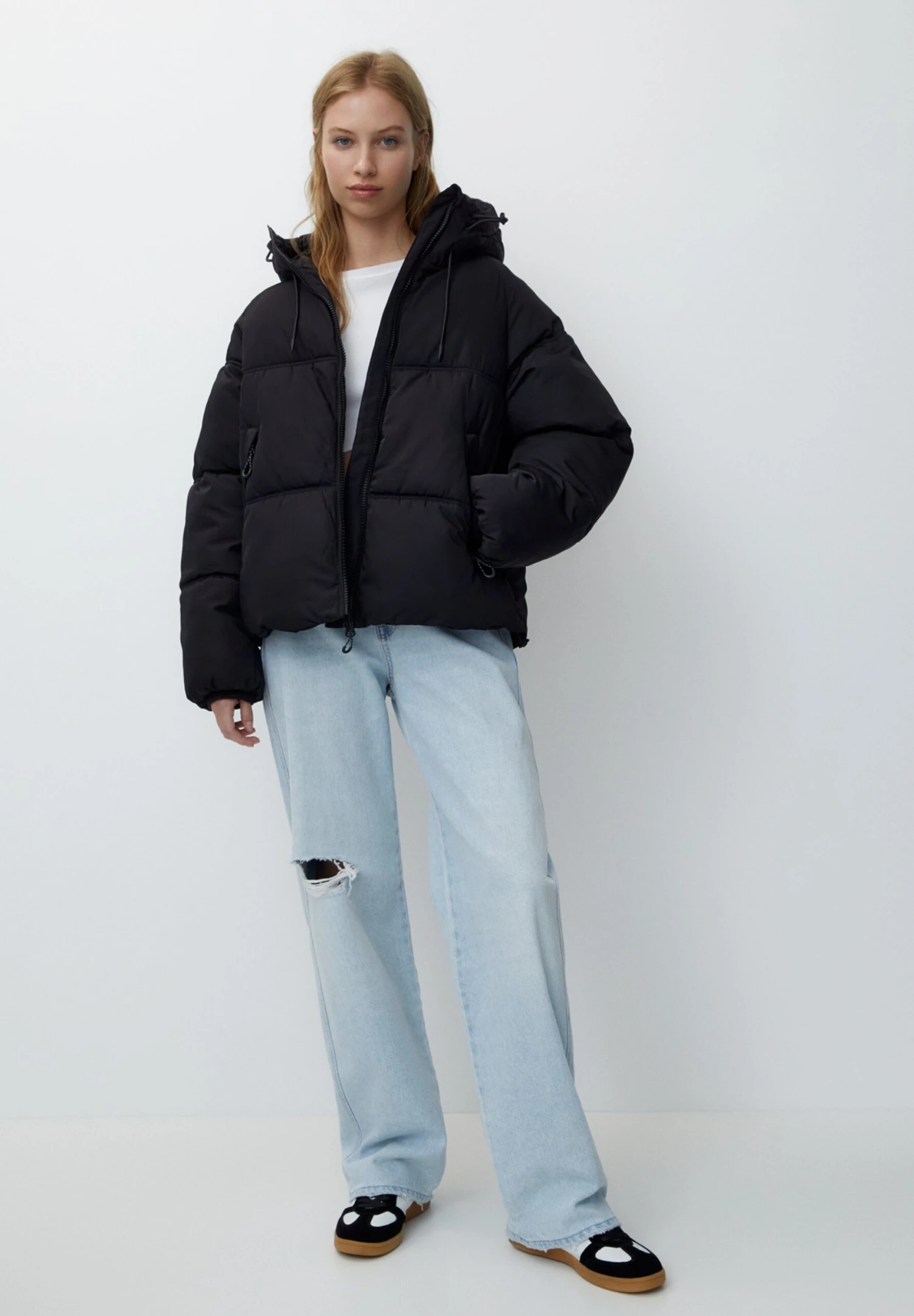 PULL & BEAR Hooded Puffer With Pockets – Giacca Invernale – Black