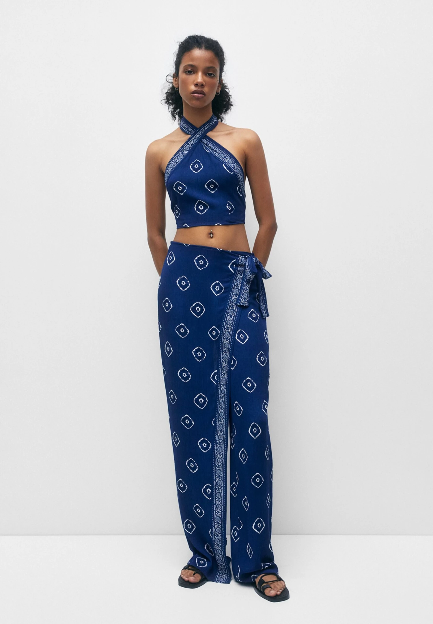 PULL & BEAR Printed Halter – Camicetta – Blue