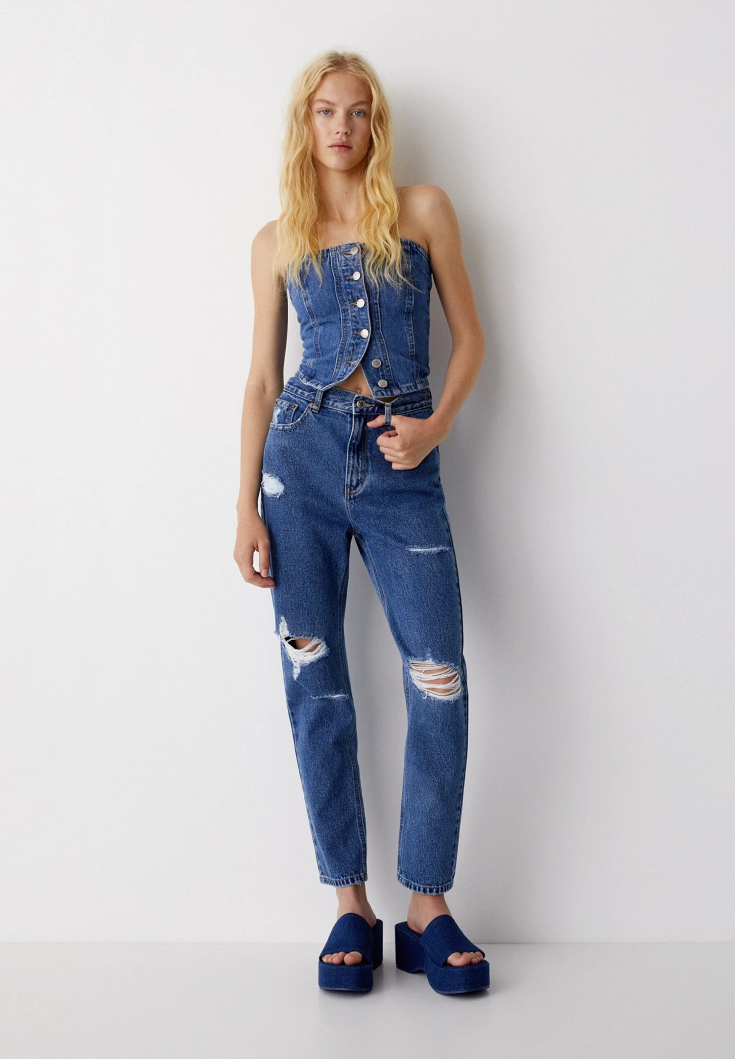 PULL & BEAR Ripped Jeans A SigarettaDark Blue Denim Donna Jeans PUC21N0LL-K12
